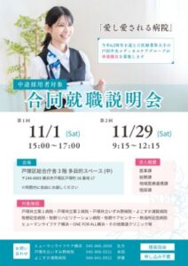 事務職 合同就職説明会を開催いたします。 ★当院の募集要項はこちら「事務職員など | 牧野記念病院」